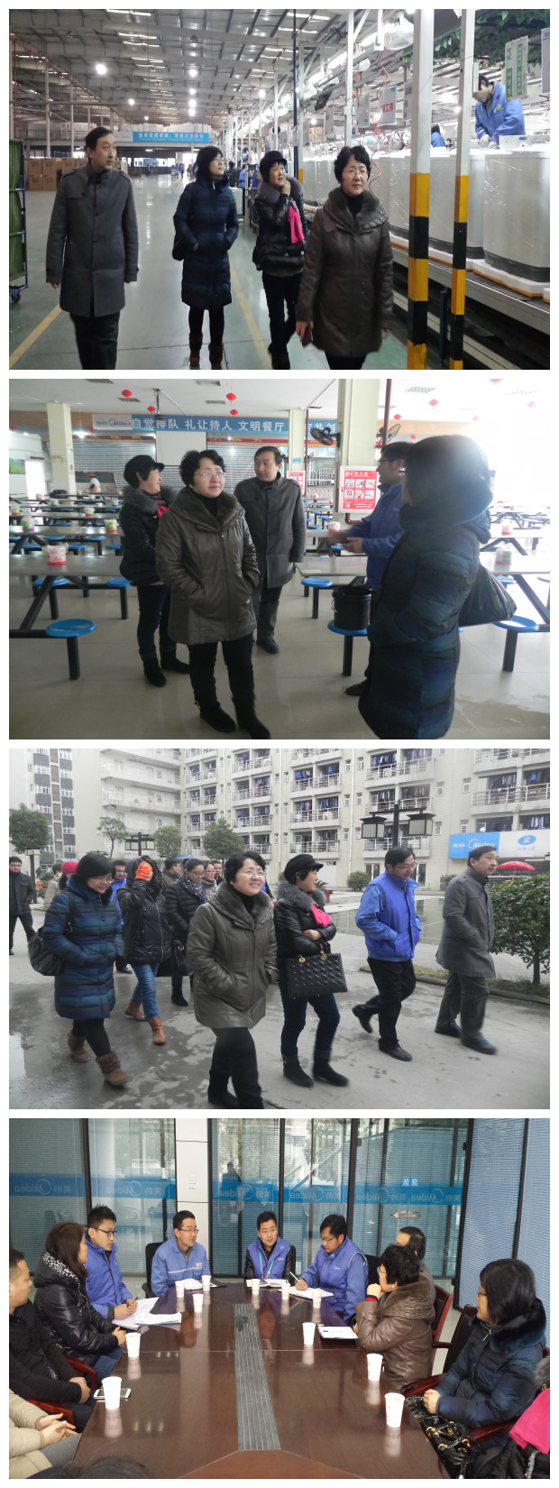 首先,美的集团合肥工业园人事经理刘山、沙金宝带领束院长一行实地查看了公司职工宿舍、食堂、生活娱乐设施。并重点参观了公司注塑车间、双桶车间和全自动总装车间。束院长在整个参观过程中,不时驻足观看,不时仔细询问,详细了解美的公司合肥工业园的生产动态、人力调配和技术研发情况。对该企业提供的一体化全方位的培养体系给予充分肯定。