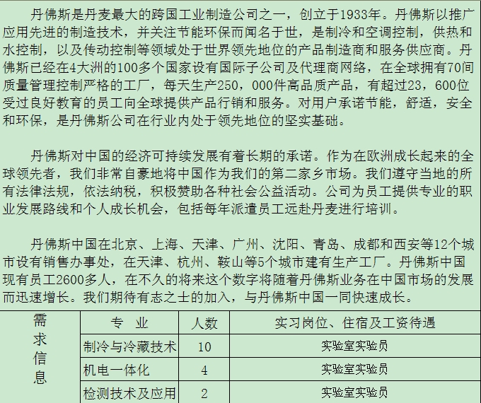 天津丹佛斯招聘启事