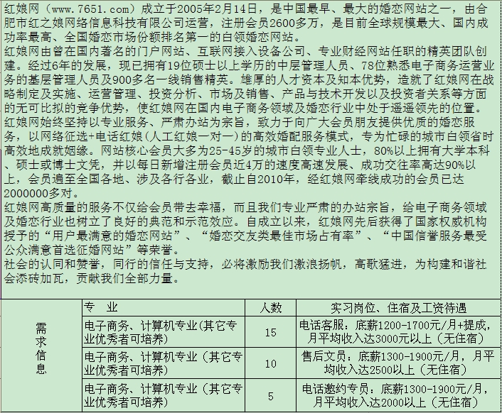 合肥红之娘网络信息科技有限公司招聘启事
