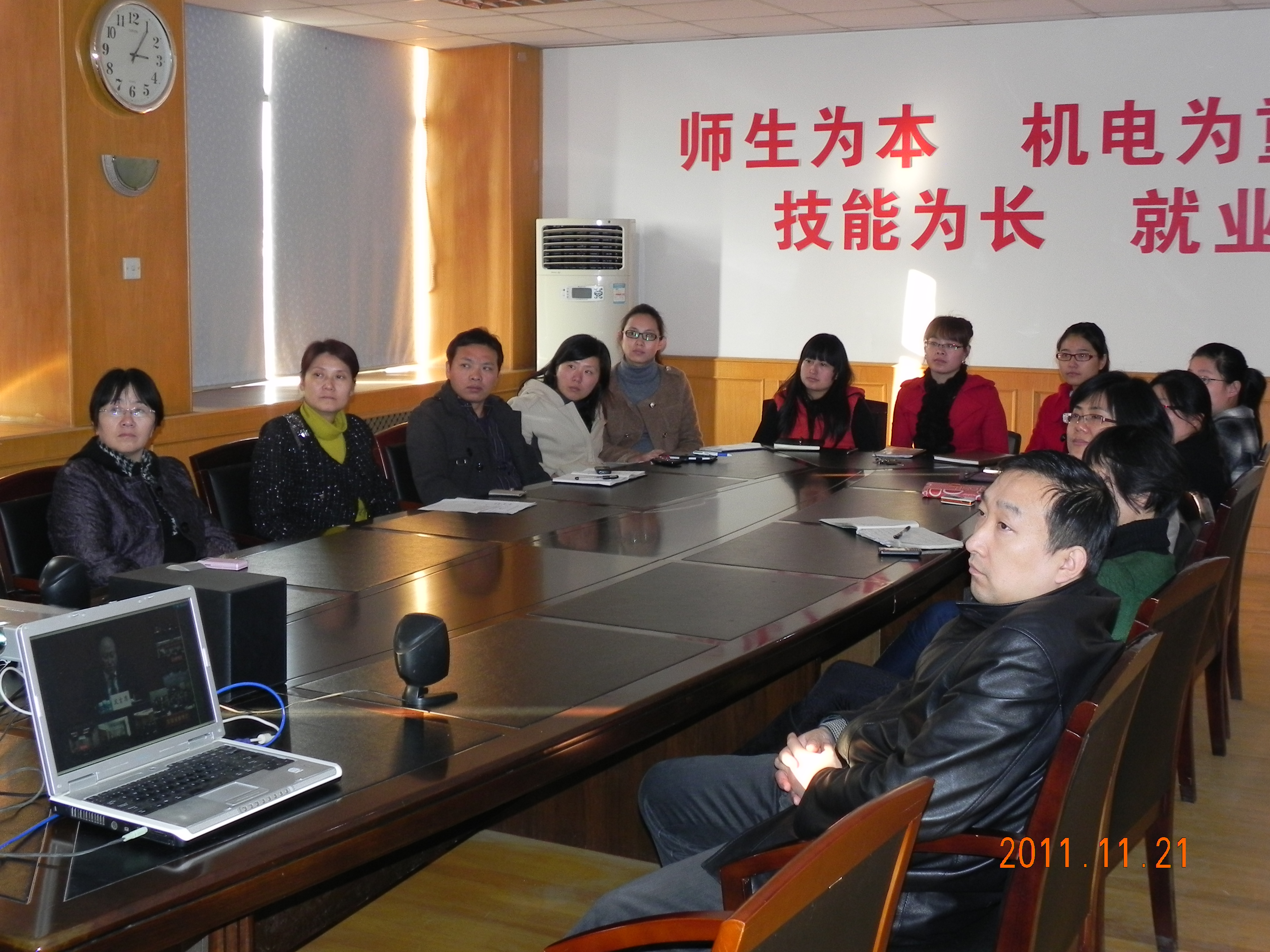 2011年11月21日下午三时整,2012年全国普通高校毕业生就业工作网络视频会议正式召开。本次会议主会场设在国家教育部北办公楼二层报告厅。安徽省教育厅和省内各普通高校均设分会场。院长束蓓、院长助理邵刚、就业办主任谭丽娅以及各系党总支书记和所有毕业班辅导员参加了设在我院西配楼七楼会议室分会场的会议。
