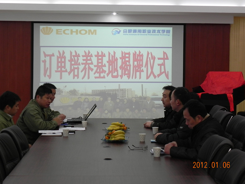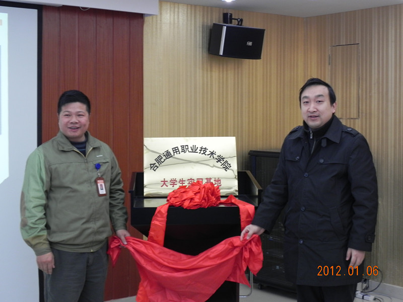 2012年1月6日,我院分别在安徽毅昌科技有限公司和安徽美芝制冷设备有限公司建立了合肥通用职业技术学院大学生实习基地。从此拉开了学院探索订单式培养模式新的序幕。学院院长助理邵刚、江道银以及就业办主任谭丽娅,机械工程系主任邹积德和数控系党总支书记王燕等领导共同出席了座谈会和揭牌仪式。