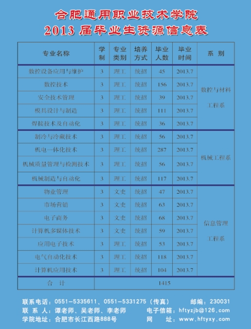 合肥通用学院2013届毕业生资源信息