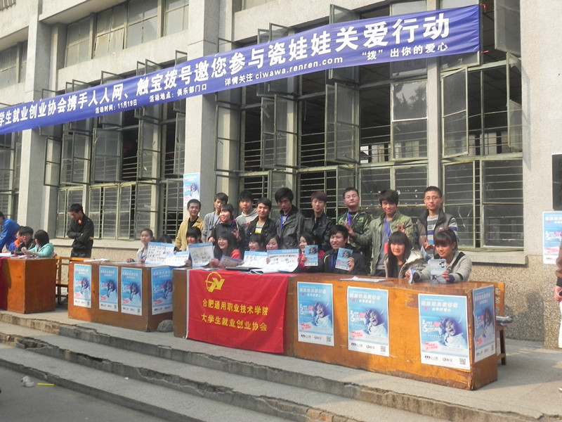 2012年11月19日中午十一点四十,由院大学生就业创业协会举办的关爱瓷娃娃公益活动在俱乐部门口隆重举行!